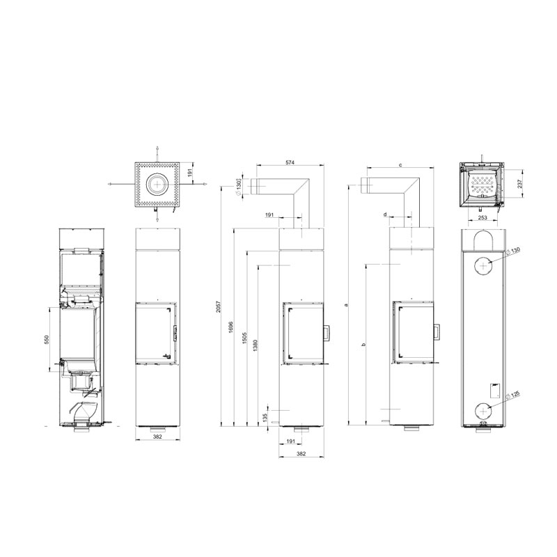 • Rauchrohr: Ø 150 mm, oben oder hinten