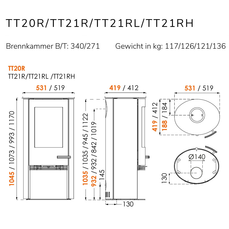 Der TermaTech TT20R verbindet runde Stahlseiten mit sauberer Verbrennung und komfortabler Bedienung. Mit 5,0 kW eignet er sich je nach Gebäude und Dämmstandard für ca. 30–120 m².