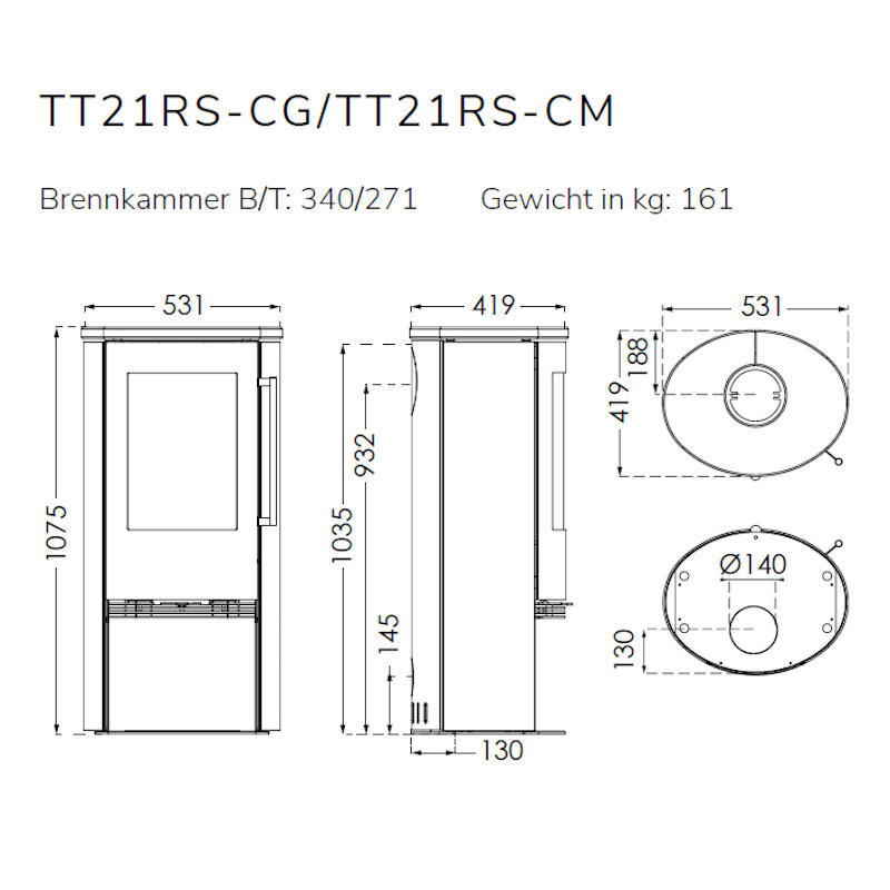 • Maße (H × B × T): 1075 × 531 × 419 mm
