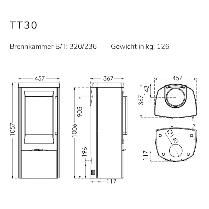 Der TermaTech TT30 ist ein schlanker Konvektions-Kaminofen mit 5,0 kW Nennleistung und eignet sich für ca. 30–120 m². Gusseiserne Bauteile an Tür und Topplatte sorgen für ein robustes, wertiges Erscheinungsbild. Die Bedienung erfolgt komfortabel über einen zentralen Luftregler.