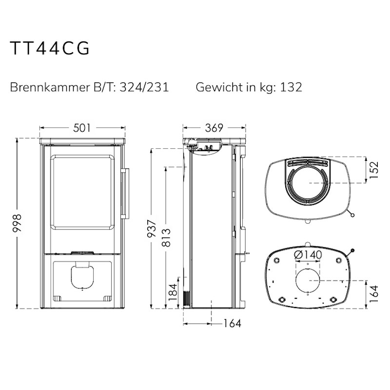 • Maße (H × B × T): 998 × 501 × 369 mm