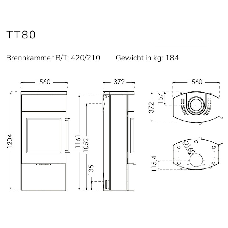 Kaminofen TermaTech TT80 Stahl schwarz 5,5 kW – Speicherwärme nach Wunsch