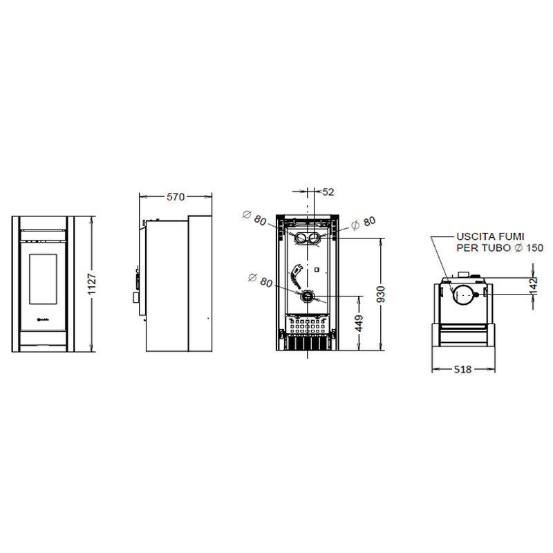 Kaminofen Thermorossi Essenza Evo Wood Metalcolor grau optional kanalisierbar