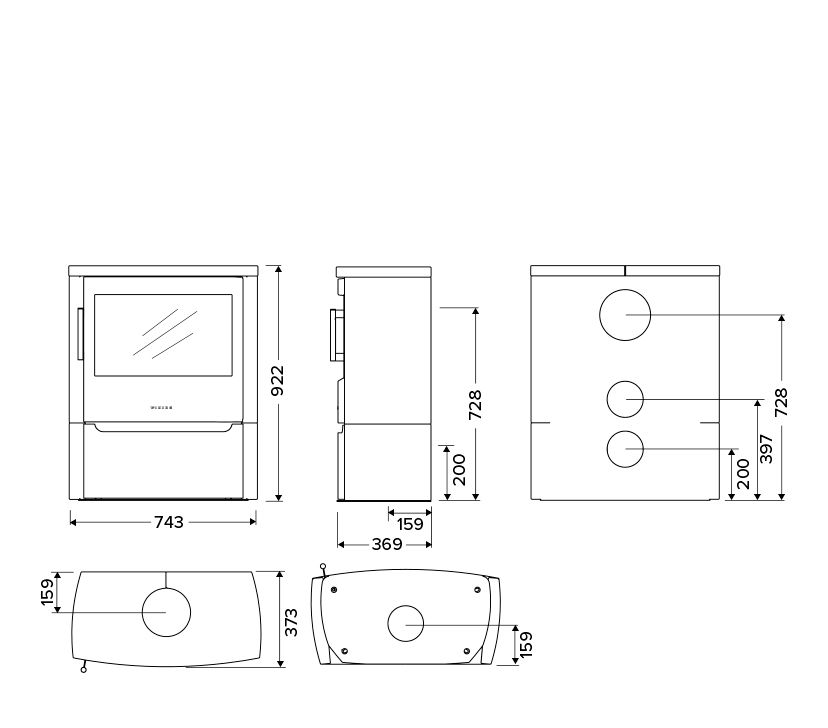 Kaminofen Wiking Maxi 4 mit Holzfachtür oder offenes Holzfach 6,3 kW Natursteinverkleidung - in Schwarz oder Grau