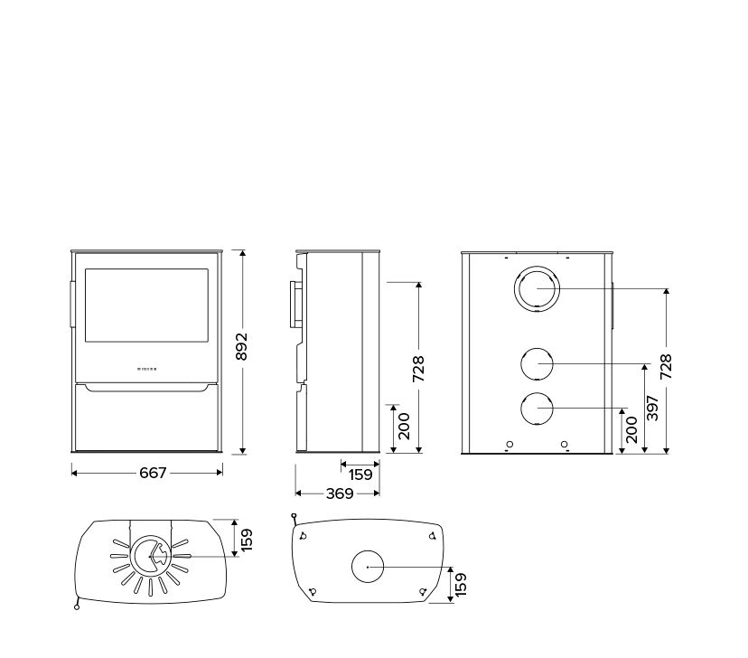 Kaminofen Wiking Maxi 4 mit Holzfachtür oder offenes Holzfach 6,3 kW - in Schwarz & Grau