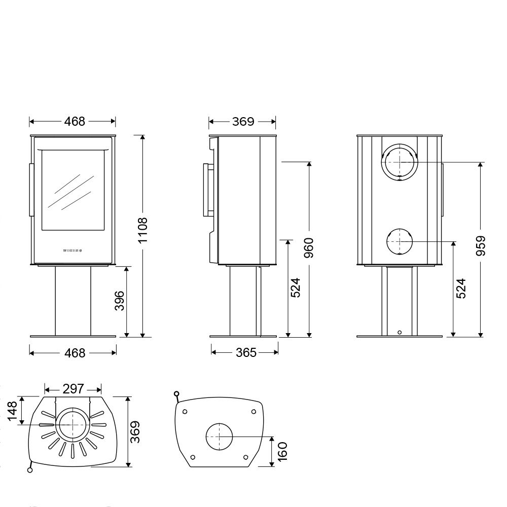 Dieser elegante Kaminofen überzeugt durch sein platzsparendes Design auf Säulenfuß. Mit automatischer Luftregulierung heizen Sie effizient und komfortabel.