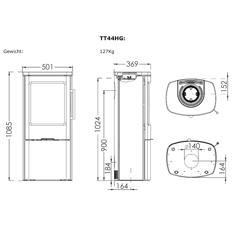 TermaTech TT44HG Kaminofen mit Seitenscheiben Stahl schwarz 4,8 kW