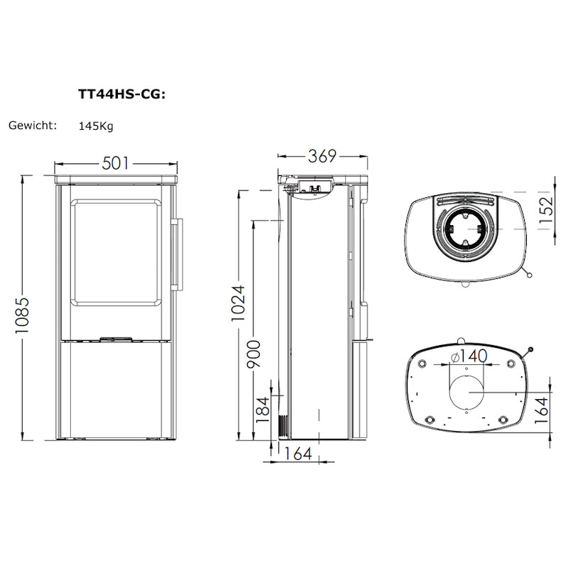 • Maße (H × B × T): 1085 × 501 × 369 mm