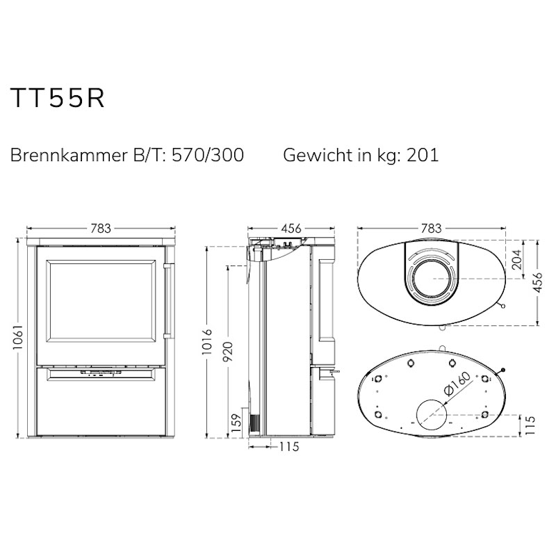 Der TermaTech TT55R überzeugt mit 7,5 kW Nennleistung und eignet sich für Räume von ca. 40–160 m². Als Konvektionsofen verteilt er die Wärme gleichmäßig und sorgt für angenehmes Raumklima – mit großem Blick auf das Feuer.