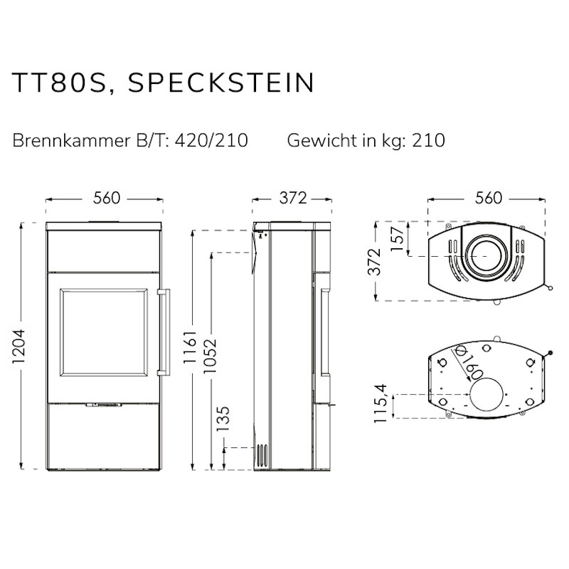 Mit 5,5 kW Nennleistung ist der TermaTech TT80S für 30–120 m² ausgelegt und verbindet schnelle Konvektionswärme mit lang anhaltender Speicherwirkung. Der Speckstein nimmt Wärme auf und gibt sie gleichmäßig ab – ideal für behagliche Abende.